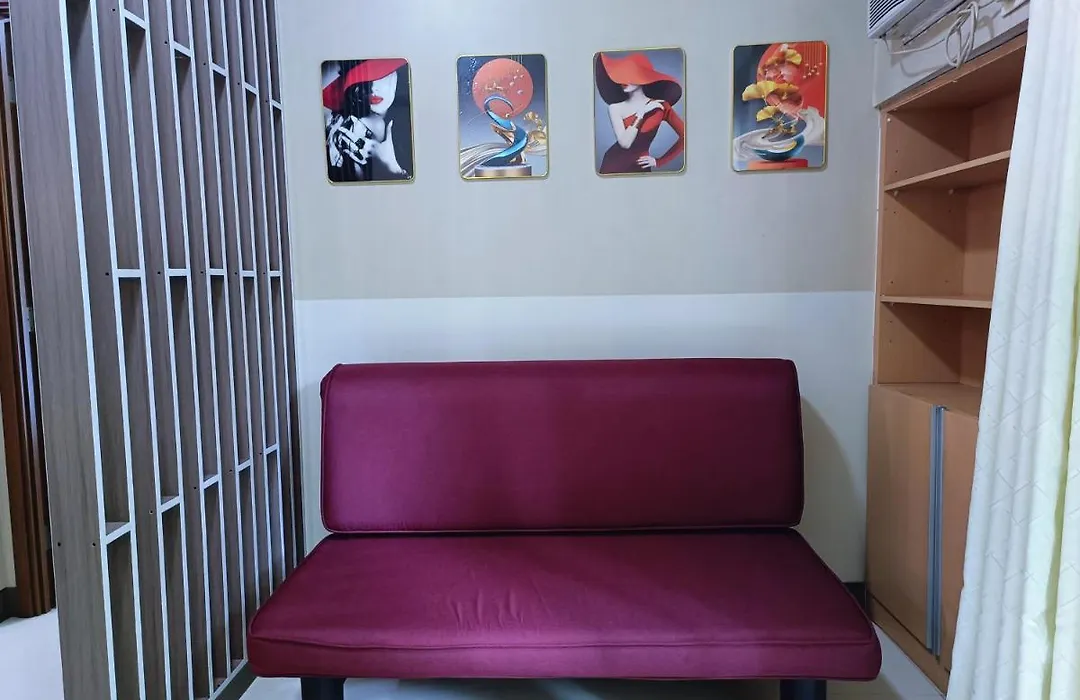 Featuring a balcony and a seating area, 1Br At Two Palmtree Villas Across Manila Airport Terminal 3 apartment is appointed with a sofa set, and modern conveniences like a multi-channel television. The accommodation has 1 bathroom with a bidet and a separate toilet.